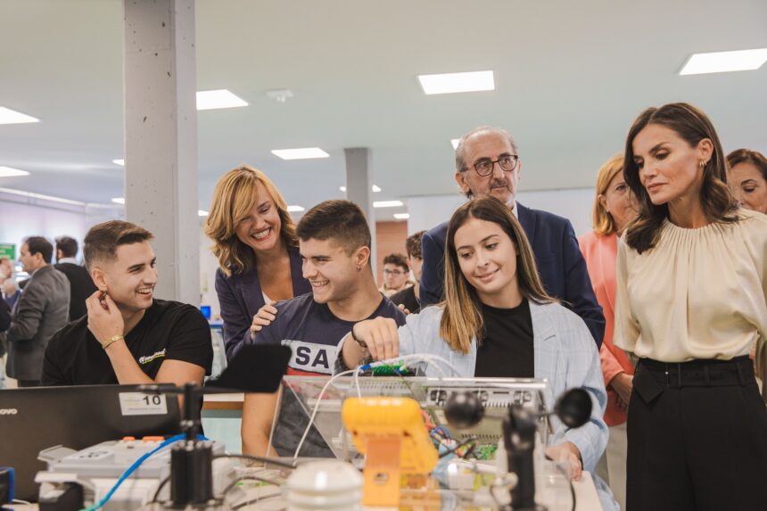 La ministra de Educación y Formación Profesional, Pilar Alegría, ha acompañado esta mañana a la Reina Letizia en la inauguración oficial del curso de Formación Profesional en el Centro Integrado de Formación Profesional ‘Aguas Nuevas’ de Albacete. Este año, están matriculados 1,1 millón de estudiantes en estas enseñanzas, un 5,6% más que el curso anterior, según el informe ‘Datos y Cifras. Curso escolar 2022-23’,