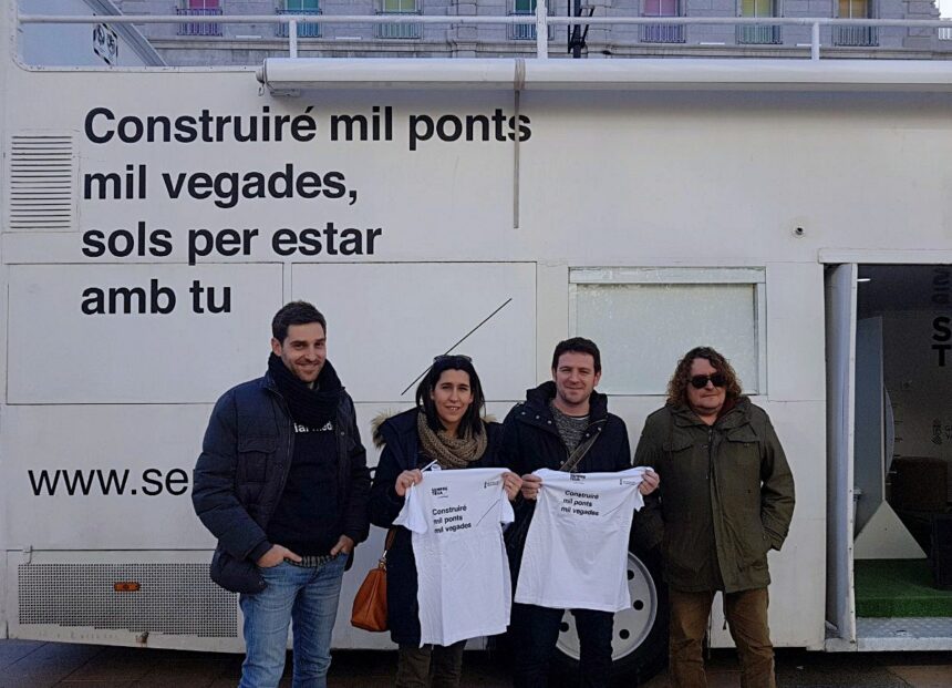 El concejal de Normalización Lingüística da la bienvenida a ‘Bus de la Llengua’ en la plaza Huerto Sogueros