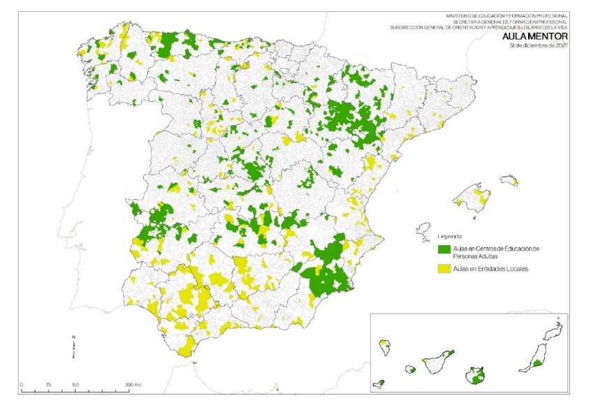 Casi la mitad de las Aulas Mentor en España se encuentra en poblaciones de menos de 5.000 habitantes. El 15,2% en municipios con menos de 1.000 vecinos y el 33,6% en localidades entre 1.001 y 5.000 ciudadanos. El objetivo, dentro del Plan de Recuperación, Transformación y Resiliencia, es extender esta red a 3.000 municipios, con especial interés en aquellos más pequeños y pertenecientes a la España rural. Para ello se van a invertir nueve millones de euros.