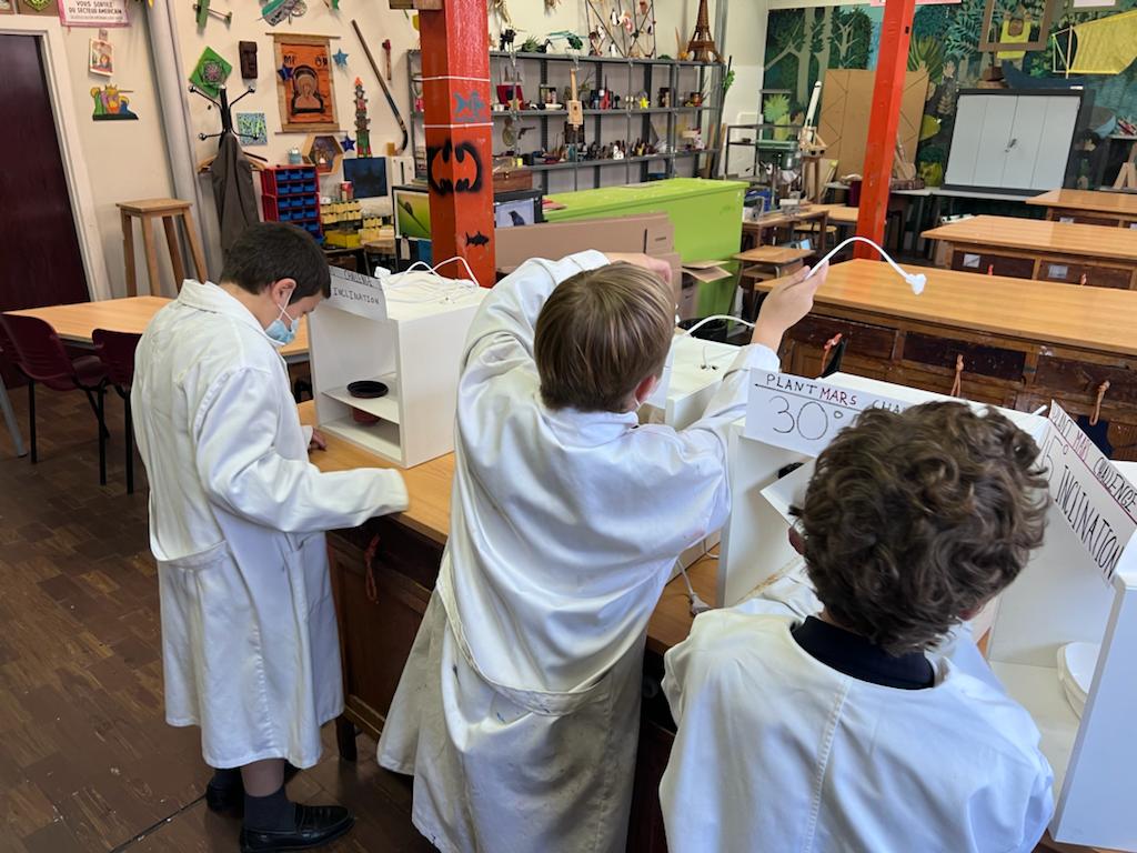 Desarrollamos un experimento con un doble enfoque. El primero, fue crear un ambiente donde las plantas pudieran sentir los efectos de la gravedad cero. Para ello, creamos 4 estaciones diferentes y colocamos las semillas en macetas con diferentes grados de inclinación: 0º, 15º, 30º y 45º, y los alumnos se encargaron de rotar las plantas sobre su propio eje cada 2 horas, durante 10 semanas, incluidos los fines de semana. El objetivo de esta parte del experimento era hacer que las células de las raíces que se encargan de localizar la gravedad perdieran la noción de la fuerza al recibirla desde diferentes ángulos.