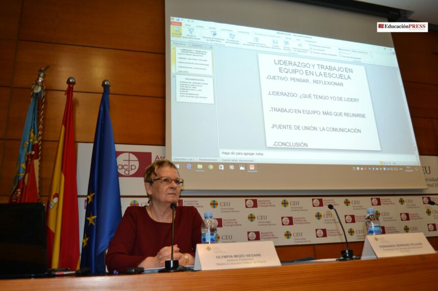 Olympia Mozo Seoane, Doctora en Filosofía, Experta en Dirección de Equipos Directivos en el ámbito educativo y Asesora de la Plataforma “Mejora tu Escuela Pública” ofrece una nueva visión del “directivo” actual que se pone al frente de un centro educativo. Para ella un líder tiene que ir por delante y debe liderar “desde dentro del equipo” y no fuera de éste.