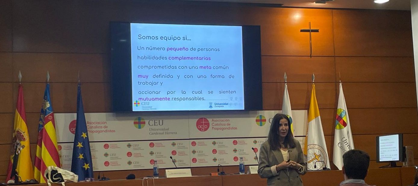 Por su parte, Alejandra Cortés Pascual, catedrática de la Facultad de Educación de la Universidad de Zaragoza, ha ofrecido la conferencia “Coaching de Equipos Sistémicos”, en la que ha subrayado la relevancia del liderazgo compartido en los entornos educativos: “la dirección de un centro educativo no puede ser un ejercicio individual. Es esencial fomentar el liderazgo sistémico, donde el equipo docente se sienta parte de una misión común y se potencie la cooperación para mejorar el bienestar y el rendimiento de toda la comunidad escolar”.