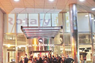 La organización Rotary proyecta su logo, End Polio Now, en el hotel Valencia Palace en la ciudad del Turia…
